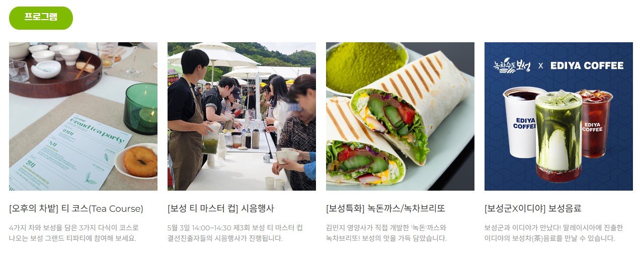 | 5월 2일 ~ 6일 | 보성다향대축제 | 한국차문화공원 외 보성 일대 |