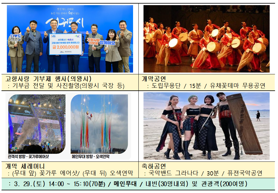 - 기타: 축제 기간 동안 다양한 공연과 체험 프로그램이 진행되오니, 자세한 일정과 내용은 서귀포시 공식 홈페이지를 참고하시기 바랍니다.