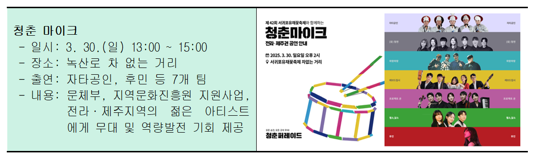서귀포유채꽃축제는 제주도의 대표적인 봄 축제로, 매년 3월 말에서 4월 초에 서귀포시 표선면 가시리 녹산로 일대에서 개최됩니다. 2025년 축제는 3월 29일과 30일 이틀간 열릴 예정입니다.