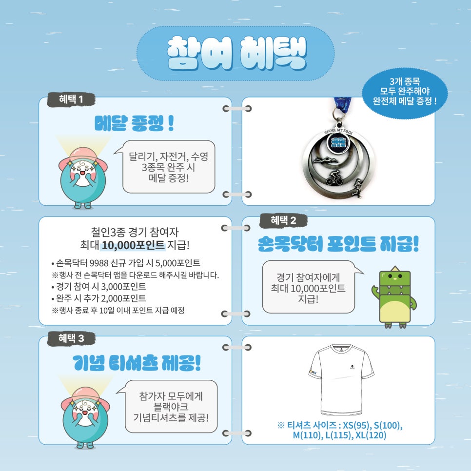 - 손목닥터9988 신규 가입 시 5,000포인트, 경기 참여 시 3,000포인트, 완주 시 추가 2,000포인트 지급