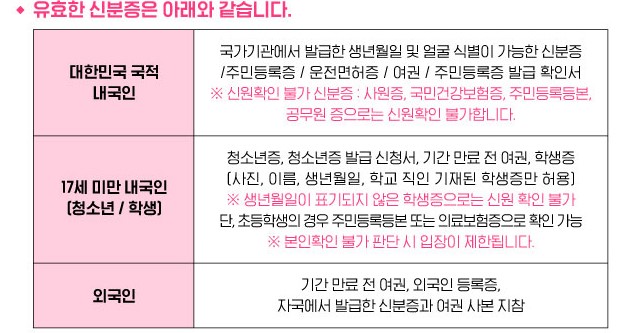 ※실물티켓이 필요하시는 관객은 실물 티켓 교환시 본인 확인을 필수로 진행하오니 꼭 명시된 신분증명서를 챙겨가시기 바랍니다.