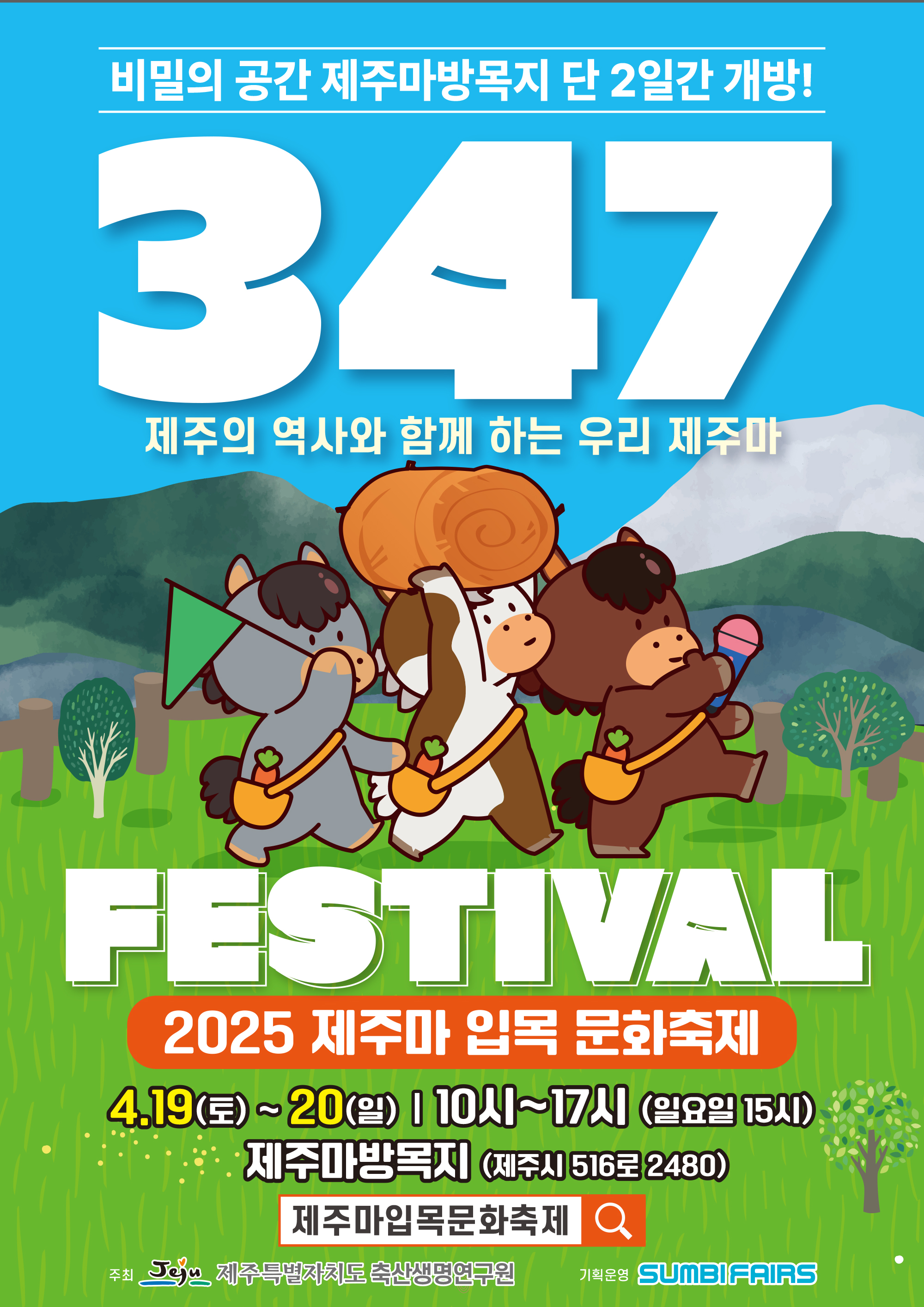 347 페스티벌은 천연기념물 제347호인 제주마의 문화적 가치를 알리기 위해 기획된 입목(入牧) 문화축제입니다.