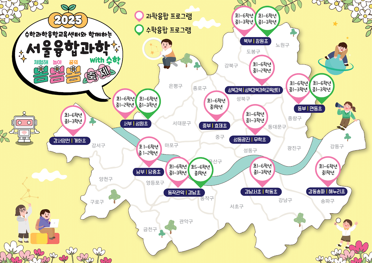 과학과 수학이 만나는 신나는 축제! 자녀들과 함께 즐거운 체험을 통해 상상력과 창의력을 키워보세요. 2025 서울융합과학 봄봄봄 축제에서 과학을 놀이처럼 경험하며 소중한 추억을 만들어 보세요!